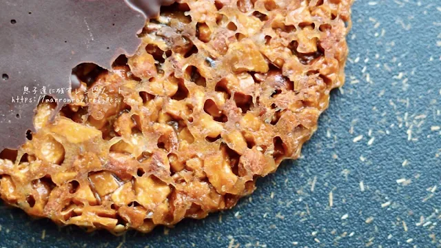 本場フランスでは薄焼きのナッツ入りレースクッキーに、チョコレートを片面に付けたものが定番だったんです!なので、コストコバージョンは、より本場のものに近いということに。